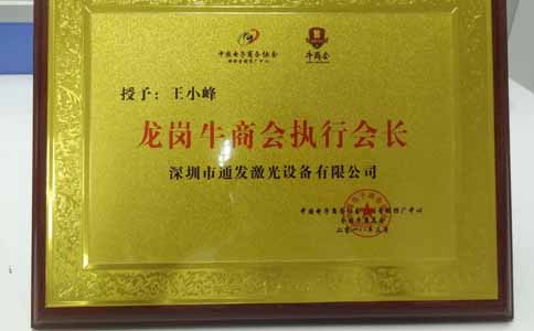 2018年3月23日,第九屆中國電子商務(wù)深圳十大牛商頒獎典禮在龍崗維也納國際酒店盛大舉行。深圳市通發(fā)激光設(shè)備有發(fā)公司王小峰總經(jīng)理出席了頒獎典禮,并與九位來自不同行業(yè)的企業(yè)家共同獲得了深圳賽區(qū)十大牛商榮譽稱號。